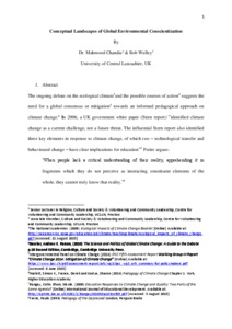 This paper, in essence, explores levels of environmental conscientization on an international scale, giving examples from field research and case studies based on active participation and community engagement, and collaboration with three diverse communities. The concern with 'participation' in social change processes builds on the work of participatory approaches to social transformation outlined by Freire. He explains: “This early work was essentially a form of popular education that saw participation as a means of engaging the excluded and disempowered in processes of learning and social transformation that would enable them to become aware of and able to overcome the structures of oppression that shaped their lives.”