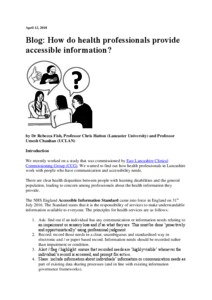 We recently worked on a study that was commissioned by East Lancashire Clinical Commissioning Group (CCG). We wanted to find out how health professionals in Lancashire work with people who have communication and accessibility needs.