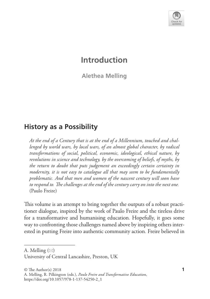 This proposed volume brings together broad themes addressing those responsibilities, exploring segregated communities, mobility, border crossing, and associated pedagogies, the emphasis being on impact and transformation. Moreover, in Freire’s words, the collection aims to create a small but significant context, where a group of educators have come together to ‘question the fatalistic perceptions of the circumstances in which they find themselves’ , and share their ideas for positive change.