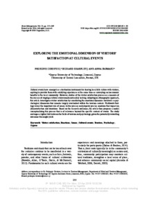 Cultural events have emerged as a destination instrument for sharing local folk culture with visitors, aspiring to provide them with satisfying experiences at the same time as conveying socio-economic benefits to the local communities. However, studies of the visitor satisfaction process as a measure of the success of staging a cultural event remain noticeably lacking. Adopting an ethnographic approach, this article investigates visitor satisfaction by considering the emotional dynamics involved- a psychological dimension that remains largely overlooked within the tourism context. Fieldwork findings reveal the important role of senses in this process and pinpoint precise emotions that impact on (dis)satisfaction and intentions. Based on the research outcomes, the article then proposes a model conceptualising this process that is of relevance beyond the specific context of events. The study envisages a tighter link between the fields of tourism and psychology, given the potentially rewarding outcomes this might yield.