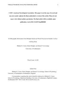 Cutter, Michael, Drieghe, Denis and Liversedge, Simon Paul ORCID: 0000-0002-8579-8546