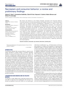 We review the literature on the relation between narcissism and consumer behavior. Consumer behavior is sometimes guided by self-related motives (e.g., self-enhancement) rather than by rational economic considerations. Narcissism is a case in point. This personality trait reflects a self-centered, self-aggrandizing, dominant, and manipulative orientation. Narcissists are characterized by exhibitionism and vanity, and they see themselves as superior and entitled. To validate their grandiose self-image, narcissists purchase high-prestige products (i.e., luxurious, exclusive, flashy), show greater interest in the symbolic than utilitarian value of products, and distinguish themselves positively from others via their materialistic possessions. Our review lays the foundation for a novel methodological approach in which we explore how narcissism influences eye movement behavior during consumer decision-making. We conclude with a description of our experimental paradigm and report preliminary results. Our findings will provide insight into the mechanisms underlying narcissists? conspicuous purchases. They will also likely have implications for theories of personality, consumer behavior, marketing, advertising, and visual cognition.