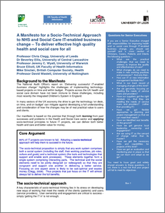 A manifesto for a socio-technical approach to NHS and social care IT-enabled business change - to deliver effective high quality health and social care for all.