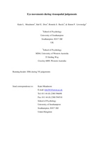 Meadmore, Katie L., Dror, Itiel E., Bucks, Romola S. and Liversedge, Simon Paul orcid iconORCID: 0000-0002-8579-8546 (2011) Eye movements during visuospatial judgements. Journal of Cognitive Psychology, 23 (1). pp. 92-101. ISSN 2044-5911