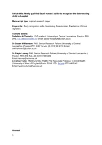 Newly qualified Saudi nurses’ ability to recognise the deteriorating child in hospital.