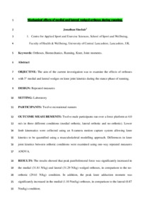OUTCOME MEASUREMENTS: Twelve male participants ran over a force platform at 4.0m/s in three different conditions (medial orthotic, lateral orthotic and no-orthotic). Lower limb kinematics were collected using an 8-camera motion capture system allowing knee kinetics to be quantified using a musculoskeletal modelling approach. Differences in knee joint kinetics between orthotic conditions were examined using one-way repeated measures ANOVA.