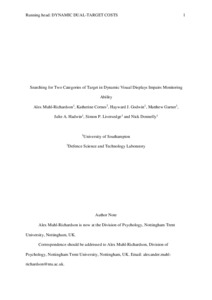 Searching for two categories of target in dynamic visual displays impairs monitoring ability.