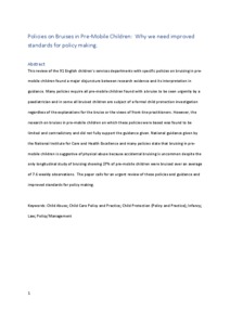 Bilson, Andrew orcid iconORCID: 0000-0003-1243-2663 (2018) Policies on bruises in premobile children: Why we need improved standards for policymaking. Child & Family Social Work, 23 (4). pp. 676-683. ISSN 1356-7500