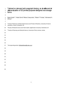 Tailored on demand anti-coagulant dosing: an in vitro and in vivo evaluation of 3D printed purpose-designed oral dosage forms.