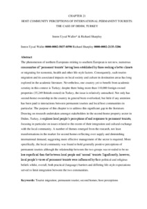 The phenomenon of northern Europeans retiring to southern European is not new, numerous communities of ‘permanent tourists’ having been established by those seeking a better climate or migrating for economic, health and other life-style factors. Consequently, such tourist-migration and its associated impacts on local society and culture in destination areas has long explored in the academic literature. Nevertheless, one country yet to benefit from academic scrutiny in this context is Turkey; despite there being more than 110,000 foreign-owned properties (35,249 British-owned) in Turkey, the issue is relatively untouched. Not only has second-home ownership in the country in general been overlooked, but little if any attention has been paid to interactions between permanent tourists and local host communities in particular. The purpose of this chapter is to address this significant gap in the literature. Drawing on research undertaken amongst stakeholders in the second-home property sector in Didim, Turkey, it explores local people’s perceptions of and responses to permanent tourists, focusing in particular on issues related to the extent of their integration and cultural exchange with the local community. A number of themes emerged from the research, not least transformations in the market for second homes reflecting over supply and diminishing international demand, suggesting more effective management of the sector is required. More specifically, the local community was found to hold generally positive perceptions of permanent tourists although the relationship between the two groups was revealed to be no less superficial than that between local people and ‘normal’ tourists. Significantly, however, local people’s views of permanent tourists were influenced by their political and religious beliefs whilst, overall, both practical (language) barriers and differing life-style expectations served to limit integration between the two communities.