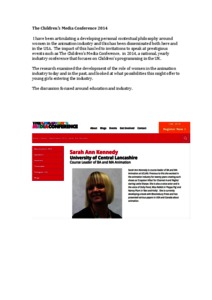 I have been articulating a developing personal contextual philosophy around women in the animation industry and this has been disseminated both here and in the USA. The impact of this has led to invitations to speak at prestigious events such as The Children’s Media Conference, in 2014, a national, yearly industry conference that focuses on Children’s programming in the UK.