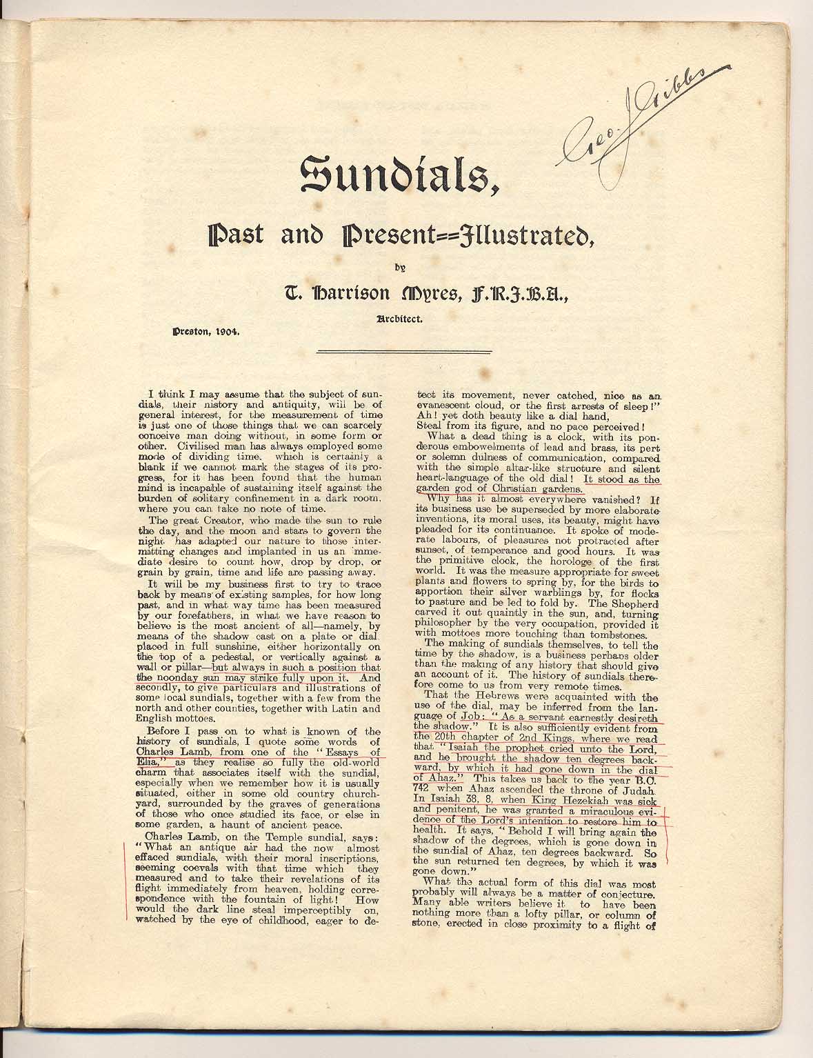 Myers, T. Harrison (1904) Sundials - Past & Present, page 5. Other. UNSPECIFIED.