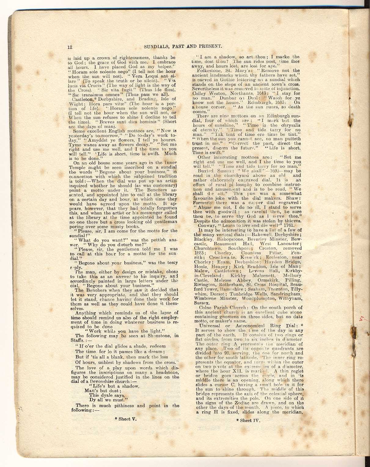 Myers, T. Harrison (1904) Sundials - Past & Present, page 12. Other. UNSPECIFIED.