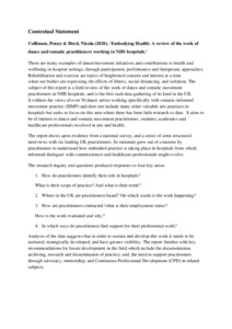 Embodying Health: a review of the work of dance and somatic practitioners working in NHS hospitals’.