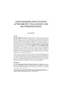 CROSS-BORDER INSOLVENCIES AFTER BREXIT: CHALLENGES AND RECOMMENDATIONS.