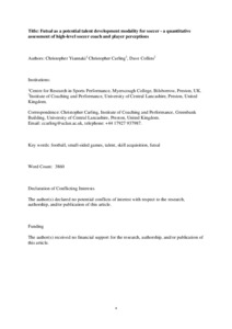 Futsal as a potential talent development modality for soccer - a quantitative assessment of high-level soccer coach and player perceptions.