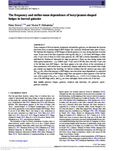 The frequency and stellar-mass dependence of boxy/peanut-shaped bulges in barred galaxies.