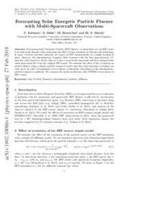 Laitinen, Timo Lauri mikael orcid iconORCID: 0000-0002-7719-7783, Dalla, Silvia orcid iconORCID: 0000-0002-7837-5780, Battarbee, Markus orcid iconORCID: 0000-0001-7055-551X and Marsh, M.S. (2018) Forecasting Solar Energetic Particle Fluence with Multi-Spacecraft Observations. Proceedings of IAU Symposium 335: Space Weather of the Heliosphere: Processes and Forecasts, 13 (s335). pp. 298-300. ISSN 1743-9213