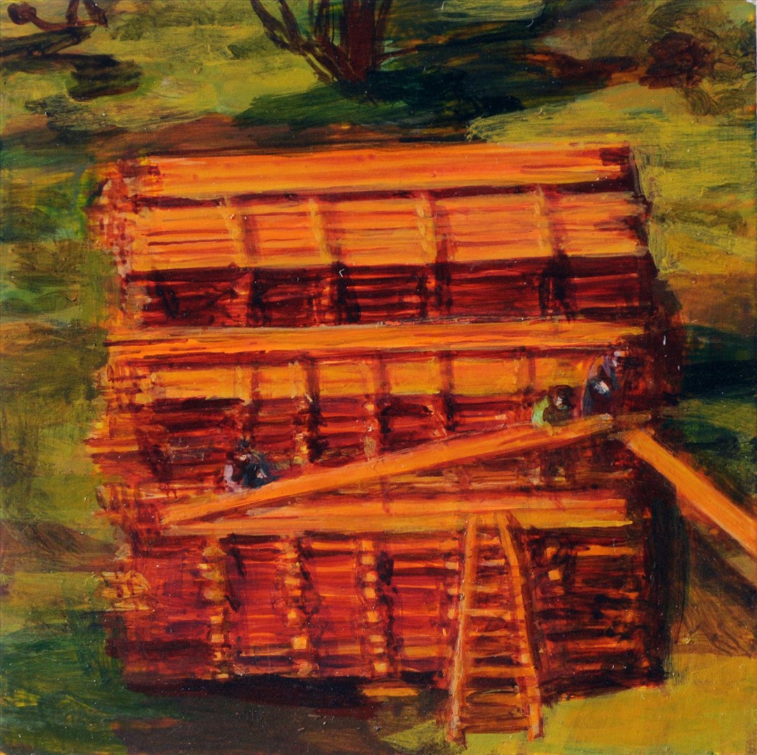 Image (JPEG) (David Alker Stacks of Wood acrylic on aluminium 7 x 7 cm)