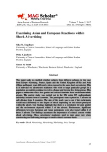 This paper seeks to establish whether subjects from different cultures, in this case from Europe (Germany, France, Spain and the United Kingdom (UK)) and Asia (China and Japan), react differently when exposed to the same shock advertising. This is of relevance to advertisers/ marketers who wish to target particular groups in a population as societies continue to evolve, change and become less homogenous. This paper examines the effects that gender and cultural identities have on different ethnic groups. The current study was carried out in the UK using 115 undergraduate university students from 6 countries. The participants were exposed to 7 adverts on safe driving from 4 countries. The aim of the study was to see if the participants would react differently to the degree of shock depending on the culture portrayed within the advert. Our findings highlight that there is a correlation between gender and the environment depicted within 3 of the adverts. Furthermore, significant differences between European and Asian participants were also found within 2 of those 3 adverts. The findings accentuate the importance of cultural content within shock advertising. Thus, advertisers/ marketers need to take great care when constructing and delivering messages to multi-cultural customer bases.