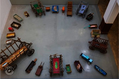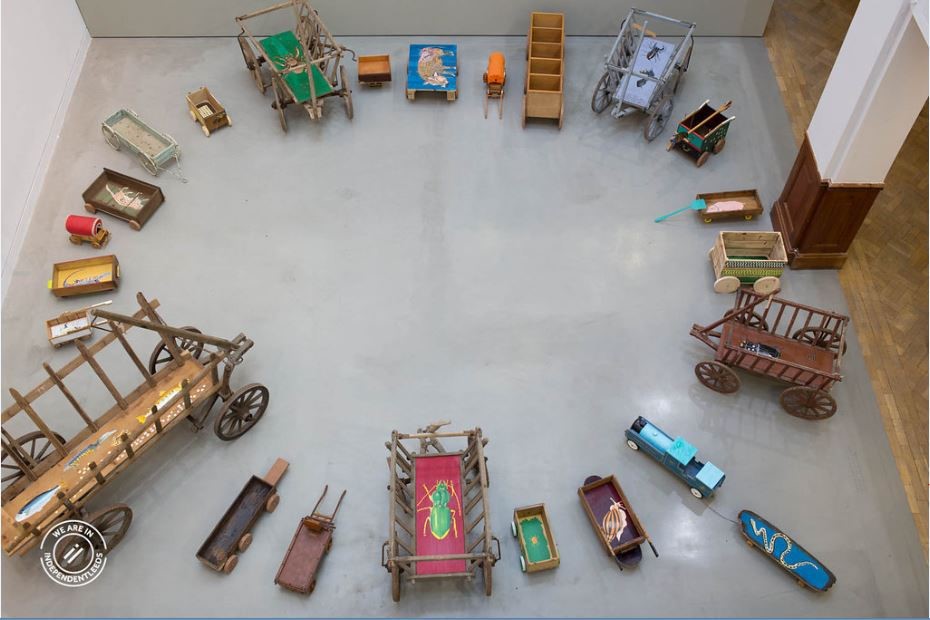 Feast Wagons was a collaborative project with Susan Walsh, featuring a large number of handmade carts and other transportation objects which became artworks in the installation shown at the Tetley Gallery in Leeds in late 2015.