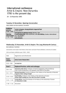 Scholarship of art associated with the British Empire has expanded over the last two decades, across a huge span of disciplines and locations. This conference takes the historic opportunity of the exhibition, featuring diverse artists from the sixteenth century to the present day, to bring together people to meet and share the latest research being developed around this subject. The papers, roundtables and audience discussions will consider the cosmopolitan character of objects and images, and the way geographical, cultural and chronological dislocations have in many instances obscured, changed or suppressed their history, significance and aesthetics. We will also explore how approaches to contemporary art, archives, curation and collecting can help develop new ways to look at them now.
