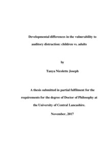 Joseph, Tanya Nicolette (2017) Developmental differences in the vulnerability to auditory distraction: children vs. adults. Doctoral thesis, University of Central Lancashire.