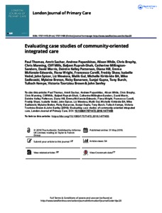 Thomas, Paul, Sachar, Amrit, Papanikitas, Andrew, While, Alison, Brophy, Chris, Manning, Chris, Mills, Cliff, Ruprah-Shah, Baljeet, Millington-Sanders, Catherine et al (2018) Evaluating case studies of community-oriented integrated care. London Journal of Primary Care, 10 (4). pp. 73-81. ISSN 1757-1472