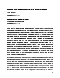 Reimagining Liberal Education: Affiliation and Inquiry in Democratic Schooling and Religious Education: Educating for Diversity [Book Review].