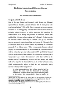 Hunter, Anna Clare orcid iconORCID: 0000-0003-4202-920X (2005) The Ethical Limitations of Holocaust Literary Representation. eSharp (5).