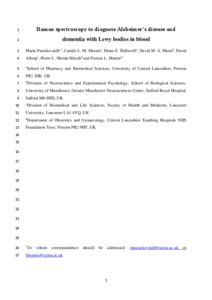 Raman spectroscopy to diagnose Alzheimer’s disease and dementia with Lewy bodies in blood