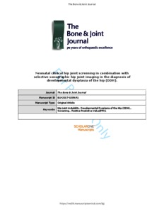 Choudry, Qas A. and Paton, Robin W. (2018) Neonatal screening and selective sonographic imaging in the diagnosis of developmental dysplasia of the hip. The Bone & Joint Journal, 100-B . pp. 806-810. ISSN 2049-4394