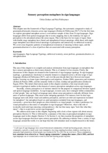 In this chapter, we explore perceptual metaphors across a convenience sample of data from 24 sign languages. To do this, the chapter uses the framework of Sign Language Typology, the systematic comparative study of grammatical/semantic domains across sign languages (Zeshan & Palfreyman, 2017). Sign languages differ from spoken languages due to iconic mapping, that is, the tendency for signs of perception to be articulated at/near the sense organs. This is the basis for two types of signs: those with double-stage metaphors have literal and metaphorical lexical meanings, while those with single-stage metaphors lack literal lexical meanings of perception and instead rely on sublexical iconicity. We cover cross-linguistic patterns of metaphorical extensions of meaning in these signs, and the grammaticalisation of a class of prefixes that are associated with sensory perception.