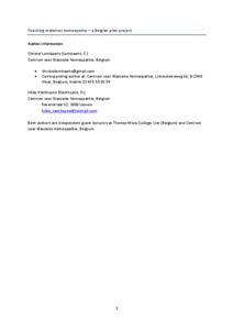 Recent Belgian legislation generated the need for homeopathic training of midwives. The Centre of Classical Homeopathy (CKH) offered a 50-hours course in homeopathy as a pilot project within the Continuing Professional Development (CPD) program of Thomas More College.