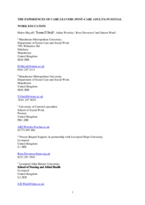 The Experiences of Care Leavers (Post-care Adults) in Social Work Education.