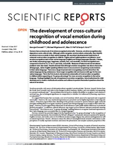 The development of cross-cultural recognition of vocal emotion during childhood and adolescence.