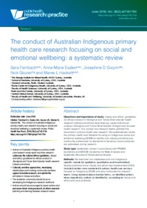 The conduct of Australian Indigenous primary health care research focusing on social and emotional wellbeing: a systematic review.
