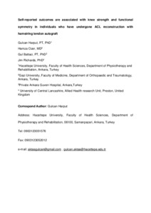 Background: The aim of this study was to investigate the relationship between self-reported knee outcomes and limb symmetry indices (LSIs) for hip and knee strength, postural control and single leg hop distance in individuals who had undergone an ACL reconstruction with hamstring tendon autograft (HTG).