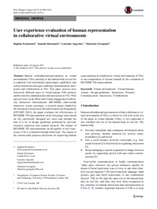 Human embodiment/representation in virtual environments (VEs) similarly to the human body in real life is endowed with multimodal input/output capabilities that convey multiform messages enabling communication, interaction and collaboration in VEs. This paper assesses how effectively different types of virtual human (VH) artefacts enable smooth communication and interaction in VEs. With special focus on the REal and Virtual Engagement In Realistic Immersive Environments (REVERIE) multi-modal immersive system prototype, a research project funded by the European Commission Seventh Framework Programme (FP7/2007-2013), the paper evaluates the effectiveness of REVERIE VH representation on the foregoing issues based on two specifically designed use cases and through the lens of a set of design guidelines generated by previous extensive empirical user-centred research. The impact of REVERIE VH representations on the quality of user experience (UX) is evaluated through field trials. The output of the current study proposes directions for improving human representation in collaborative virtual environments (CVEs) as an extrapolation of lessons learned by the evaluation of REVERIE VH representation.