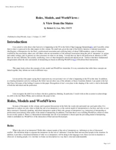 This article discusses the relationships between the worldviews held by interpreters and how they are manifested in models of interpreting service delivery as well as in role behaviours.