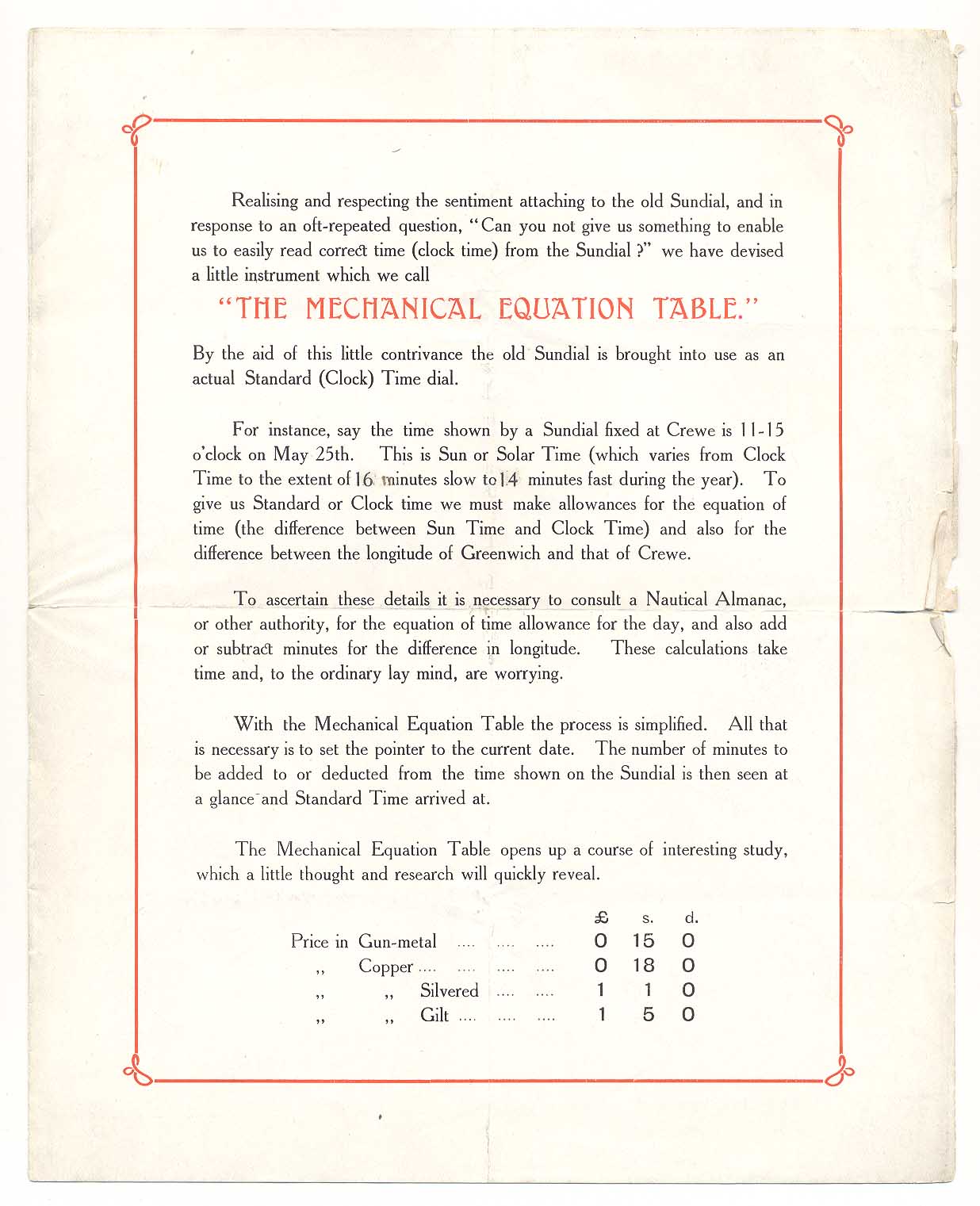 Pilkington, William Renard Mechanical Equation Table promo leaflet - back. Other. UNSPECIFIED.