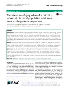 Brüniche-Olsen, Anna, Westerman, Rick, Kazmierczyk, Zuzanna, Vertyankin, Vladimir V, Godard-Codding, Celine, Bickham, John W and DeWoody, J Andrew (2018) The inference of gray whale (Eschrichtius robustus) historical population attributes from whole-genome sequences. BMC evolutionary biology, 18 (1). p. 87.