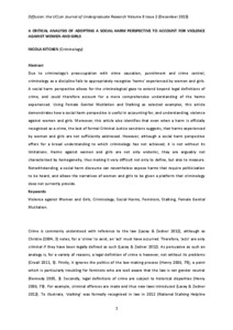 Kitchen, Nicola (2016) A Critical Analysis of Adopting A Social Harm Perspective to Account for Violence Against Women and Girls. Diffusion- The UCLan Journal of Undergraduate Research, 8 (2). pp. 1-12. ISSN 1759-6777