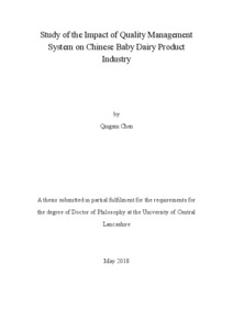 Chen, Qingxin (2018) Study of the Impact of Quality Management System on Chinese Baby Dairy Product Industry. Doctoral thesis, University of Central Lancashire.
