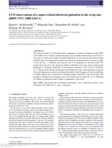Holdsworth, Daniel Luke orcid iconORCID: 0000-0003-2002-896X, Hideyuki, Saio, Ramotholo, R. Sefako4 and Bowman, M Dominic (2018) LCO observations of a super-critical distorted pulsation in the roAp star J0855 (TYC 2488-1241-1). Monthly Notices of the Royal Astronomical Society, 480 (2). pp. 2405-2410. ISSN 0035-8711