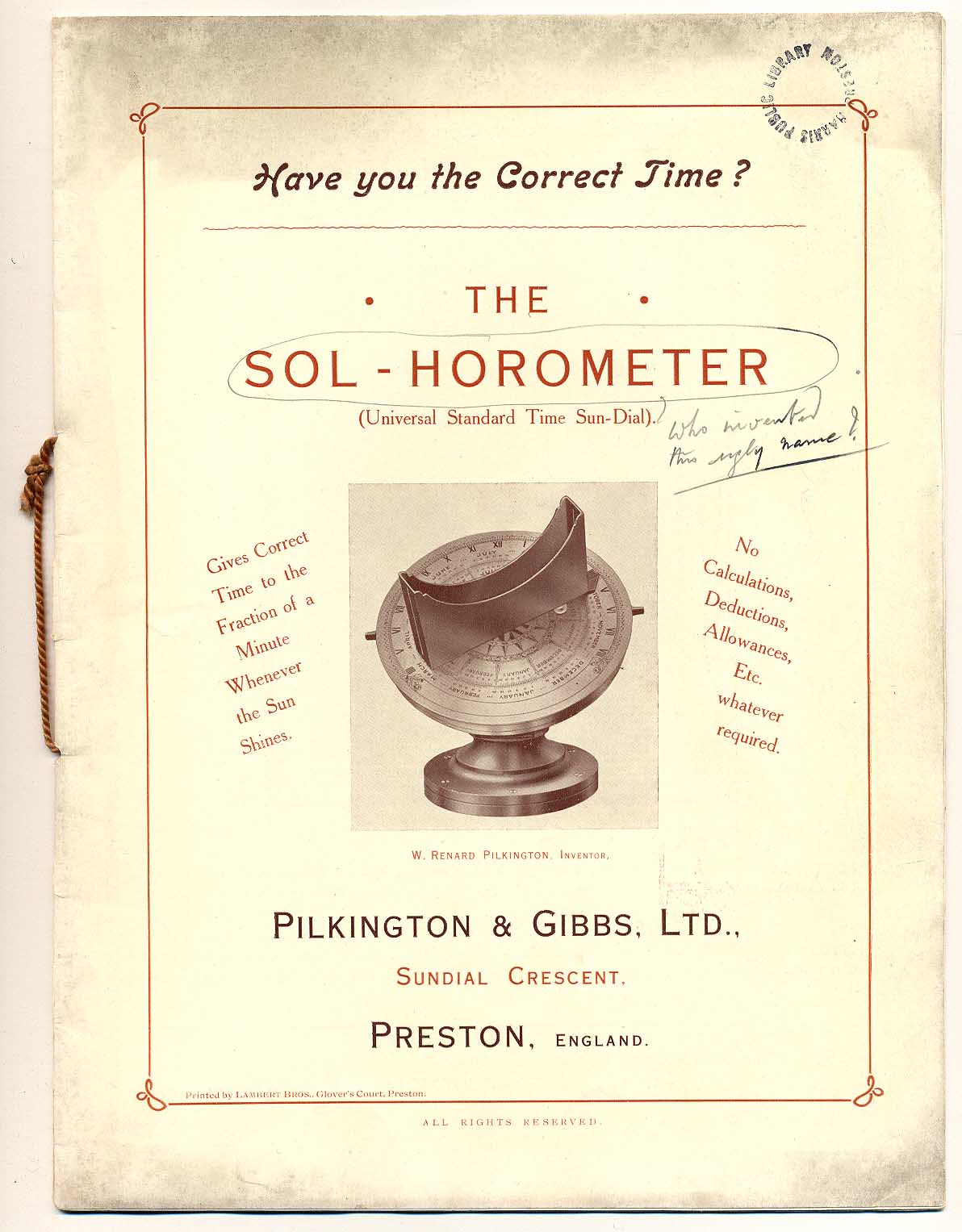 Pilkington, William Renard Promotional material – Sol Horometer brochure, page 1. Other. UNSPECIFIED.