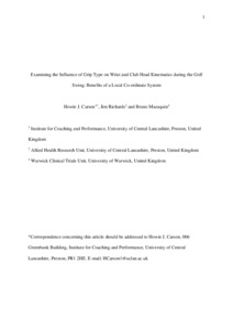 Examining the influence of grip type on wrist and club head kinematics during the golf swing: Benefits of a local co-ordinate system.