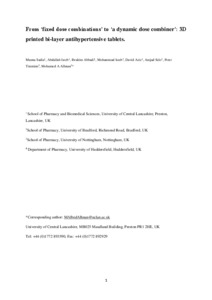 From 'fixed dose combinations' to 'a dynamic dose combiner': 3D printed bi-layer antihypertensive tablets