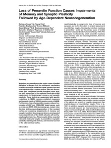 Loss of presenilin function causes impairments of memory and synaptic plasticity followed by age-dependent neurodegeneration.