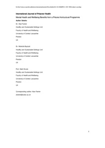 Mental Health and Wellbeing Benefits from a Prisons Horticultural Programme.